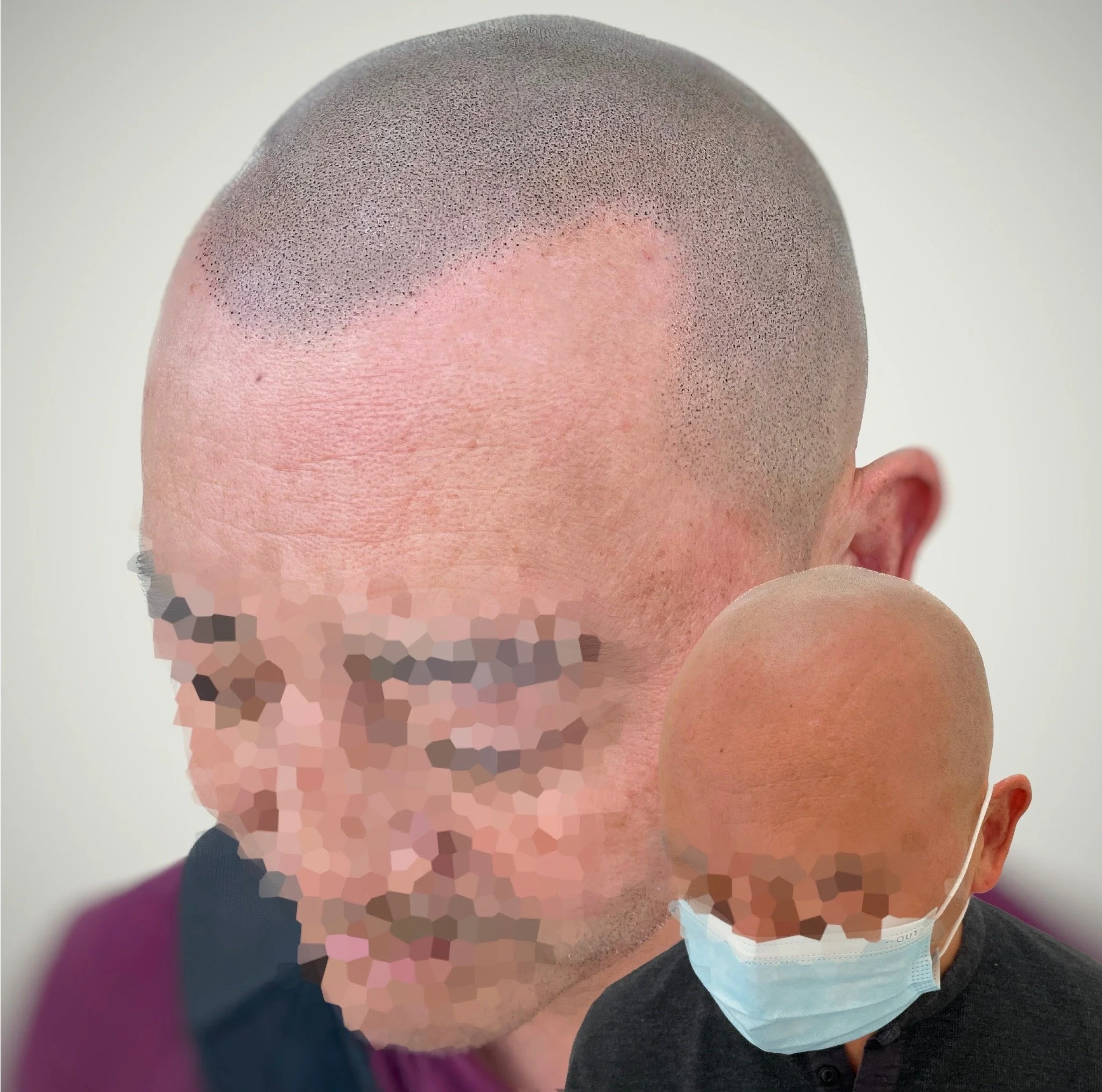 Is administered in the same manner as a tattoo, applying tiny dots on the scalp to create the illusion of a fuller head of hair or to conceal baldness.